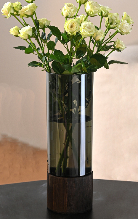 Пластиковая ваза для цветов прозрачная, цилиндр, 12 см х 30 см, графитовый