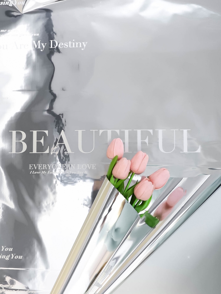 Пленка матовая 30мкм 58см х 10м РЦ Beautiful на серебре надпись белый