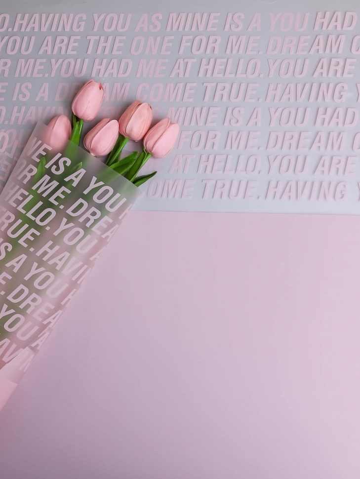 Пленка матовая 55мкм 58см х 10м РЦ надписи признания розовый