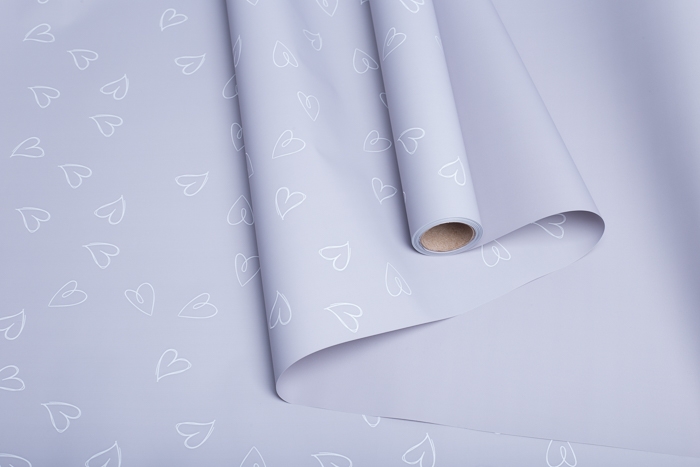 Пленка матовая 65мкм 58см х 10м сердечки серый туман