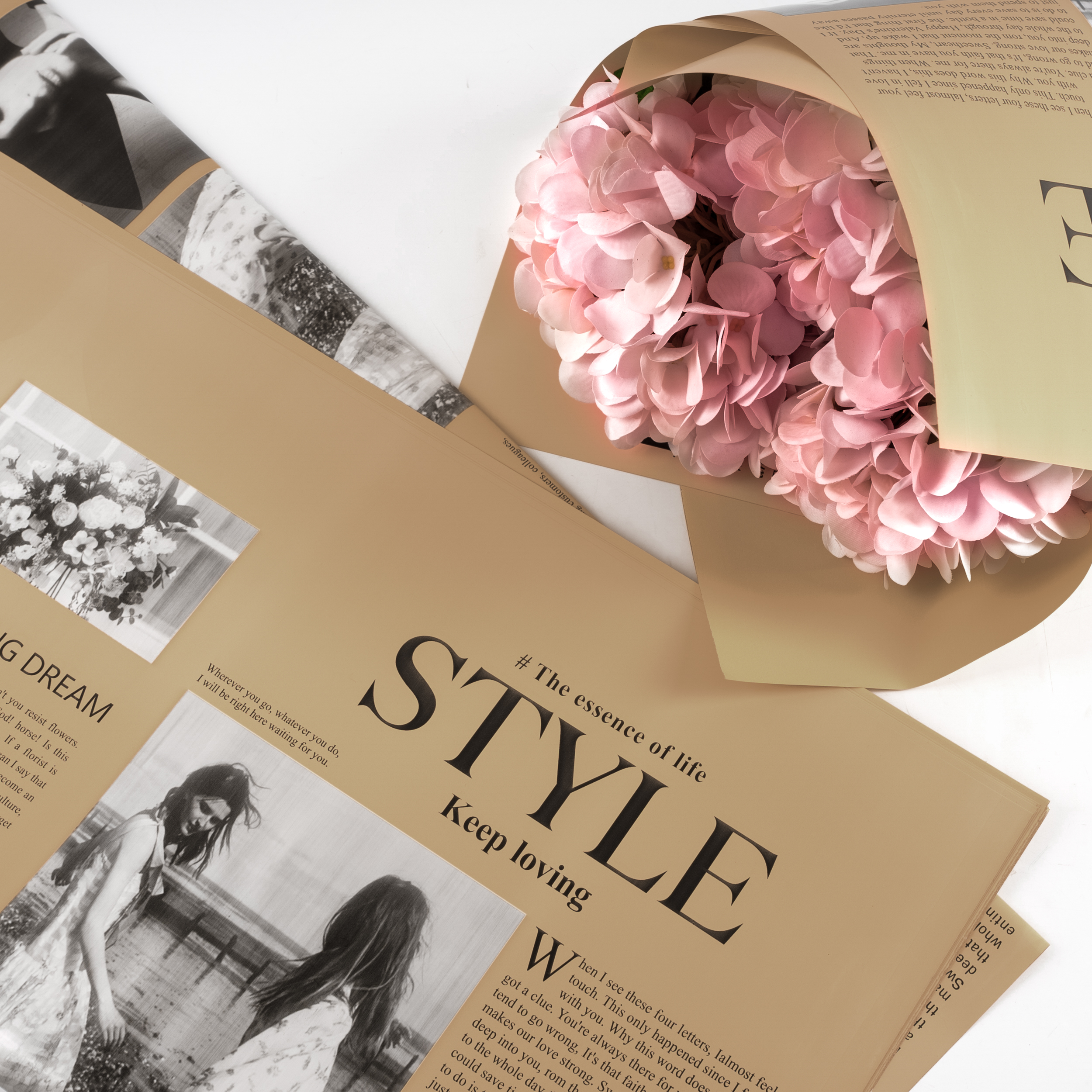 Пленка матовая двусторонняя Газета (STYLE) 56*56см Латте 6 20 листов
