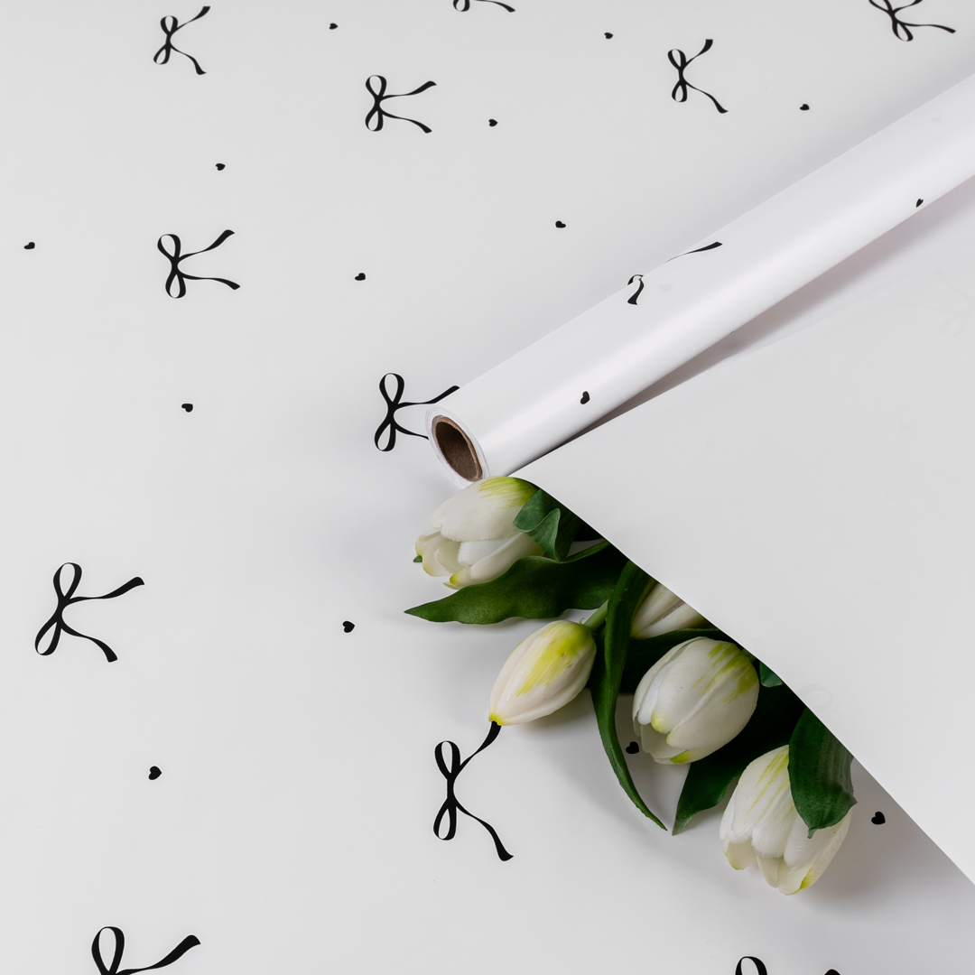 Пленка матовая “Лента любви” 57см*10м Белая с черными бантами-05 т.м.30