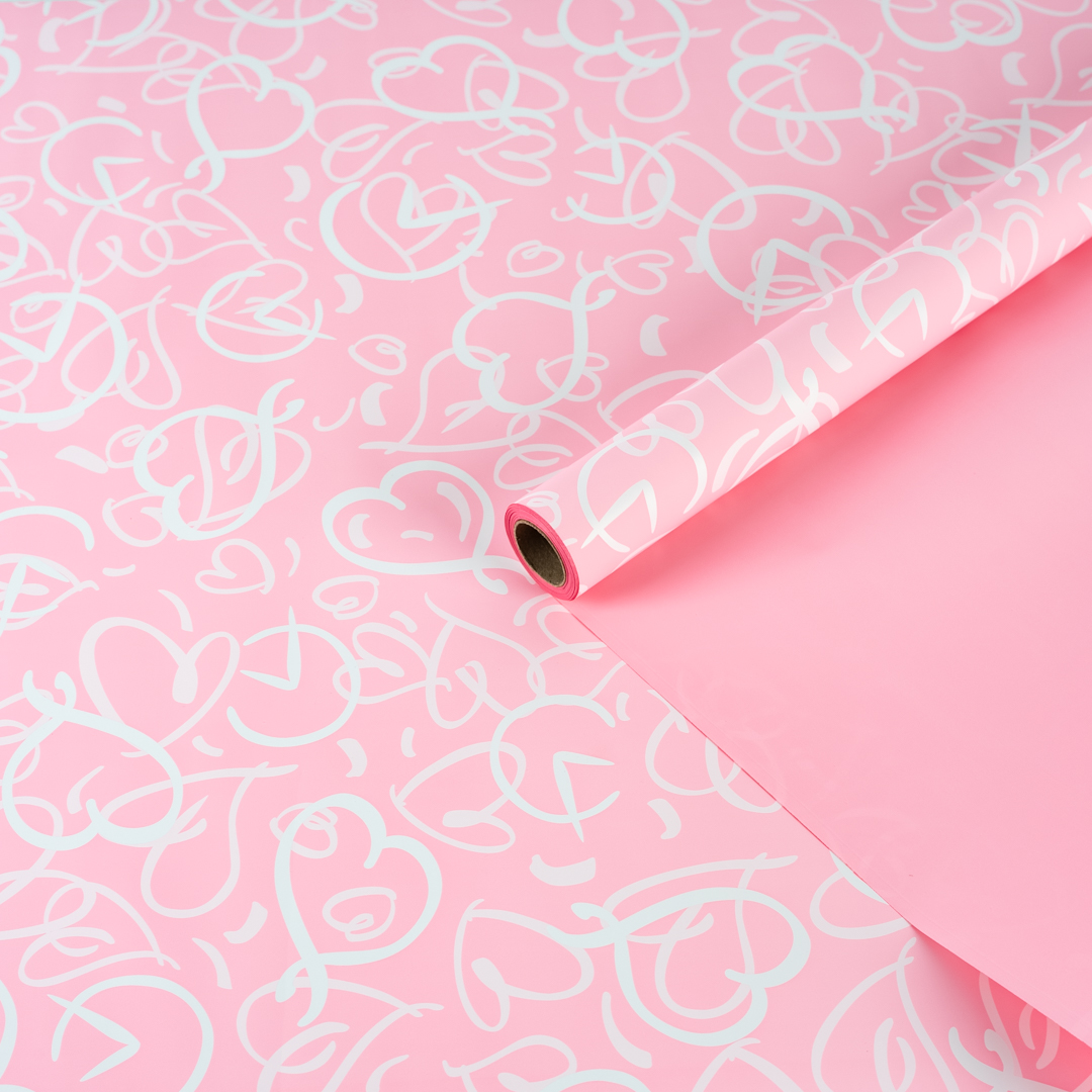 Пленка матовая “Сплетение сердец” Розовая-03 57см*10м т.м.30
