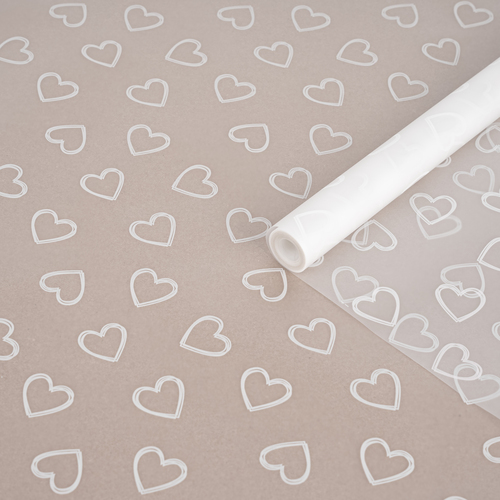 Пленка матовая с рисунком “Сердечки №2” белый 60см 200гр 50мкм