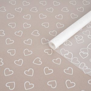 Пленка матовая с рисунком “Сердечки №2” белый 60см 200гр 50мкм