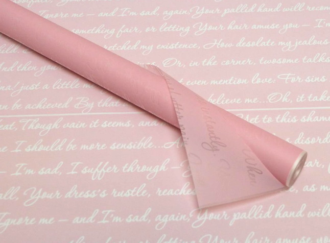 / Пленка матовая с рисунком “Слова” нежно-розовый 60см 200гр