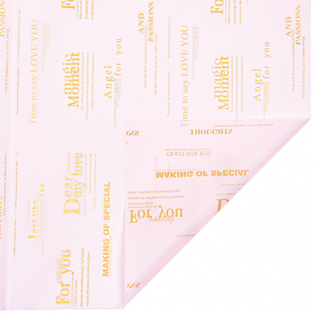 Пленка матовая “Буквы” 58*58см Розовая с Золотыми буквами 03 20 листов