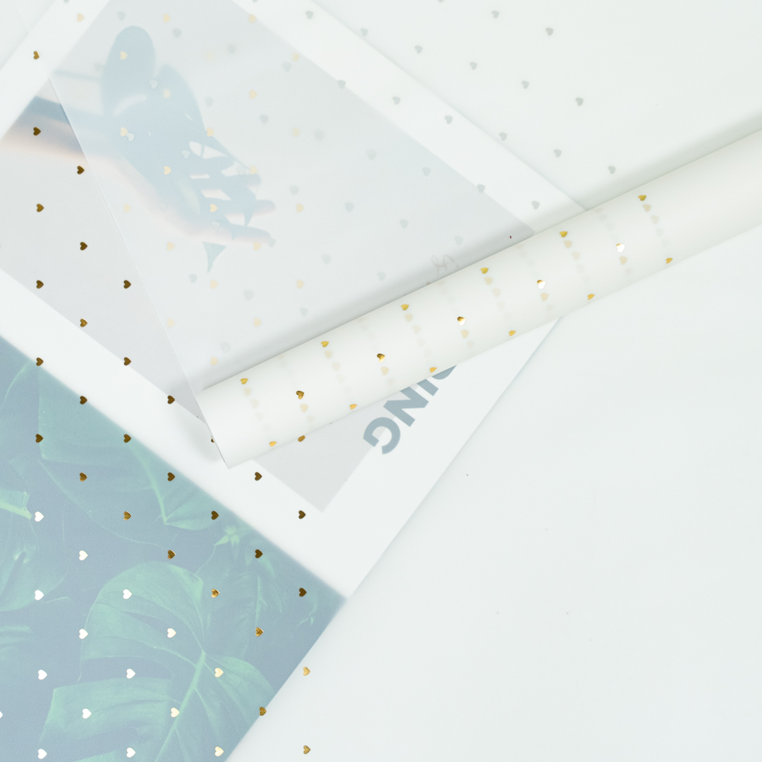 / Пленка матовая “Любовный узор” 57см*10м Белая с золотыми сердцами-06 т..м.30
