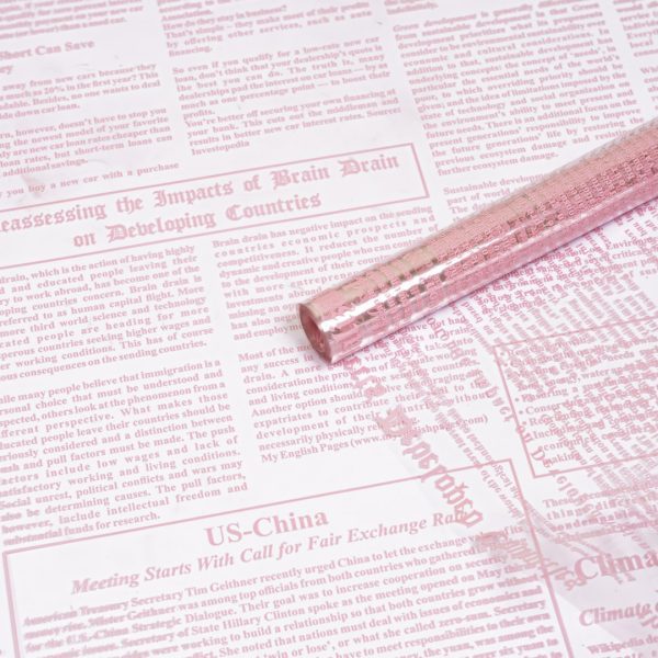 Пленка прозрачная с рисунком “Газета деловая” Нежно-розовый 70см 200гр
