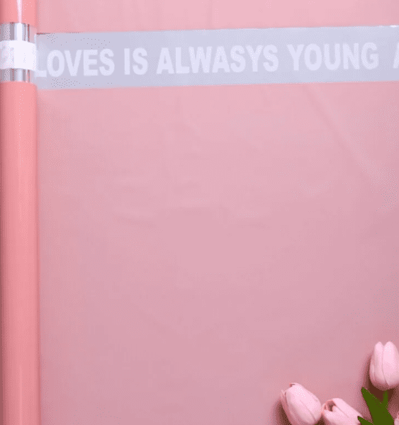 / Пленка цветная 45 мкм 58см х 10м РЦ с надписью розовый матовый