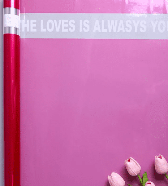 Пленка цветная 45 мкм 58см х 10м РЦ с надписью розовый яркий