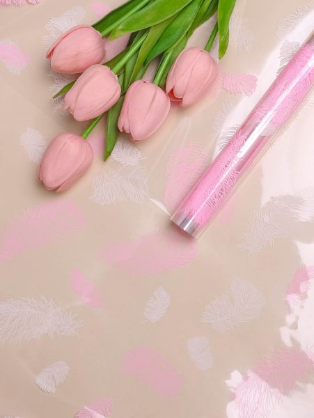 Пленка цветная 60см Перышки белый/розовый жемчуг