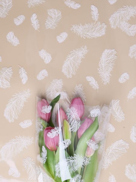 Пленка цветная 60см Перышки белый/сиреневый светлый