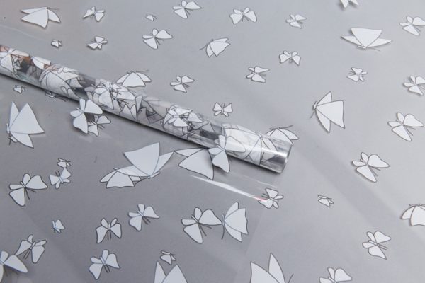 Пленка цветная 60см Мотыльки сиреневый светлый