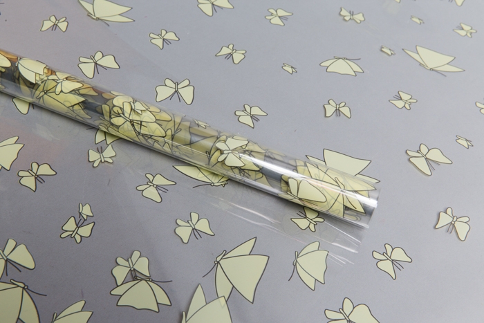 Пленка цветная 60см Мотыльки желтый нежный