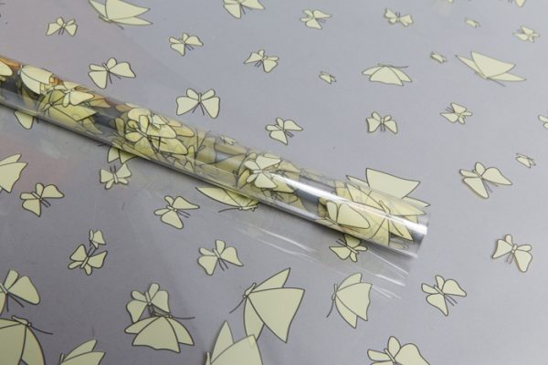 / Пленка цветная 60см Мотыльки желтый нежный