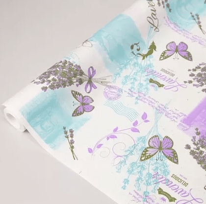 Флористическая крафт бумага “Lavender”, 70 см x 10 ярд, белый / сирень-бирюза-фисташка