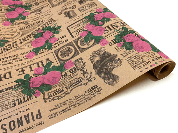 / Флористическая крафт бумага “Кутюрье”, 70 см x 10 ярд, бурый / черный-малина-зеленый