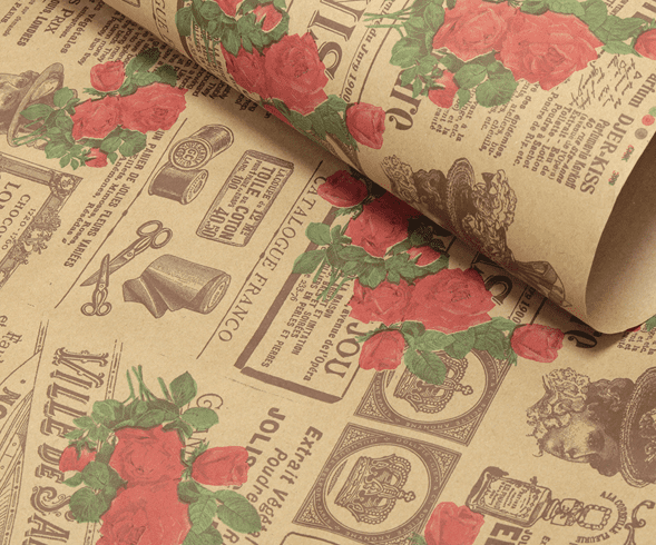/ Флористическая крафт бумага “Кутюрье”, 70 см x 10 ярд, бурый / коричневый-красный-зеленый