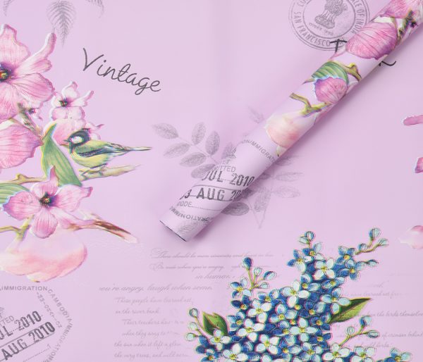 Флористическая пленка “Vintage”, 65 мкр, 58 см х 58 cм, 20 листов/упак., пастельно-сиреневый