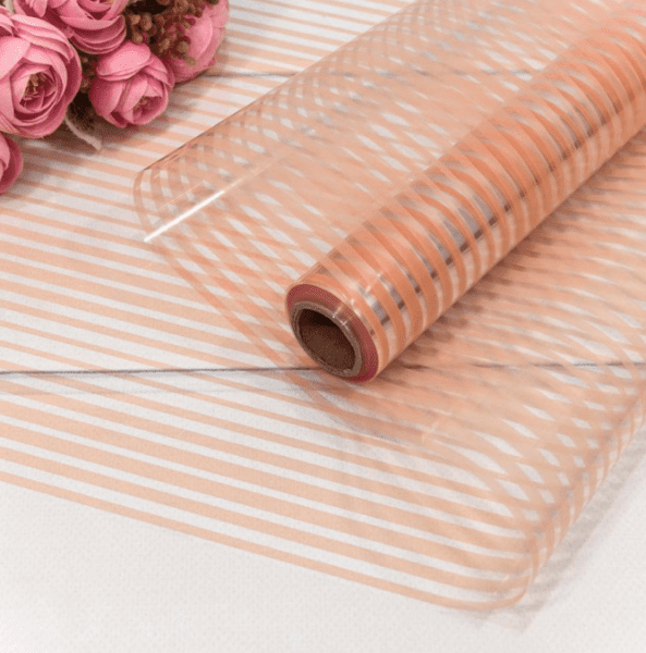 Плёнка 0,58*10м глянцевая в полоску 50мкм Персиковый 1/30