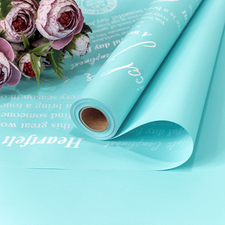 Плёнка 0,58*10м матовая двухсторонняя 65мкм с глянцевой печатью Голубой 0032
