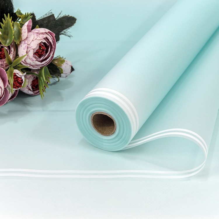 Плёнка 58 см 800 г матовая с двойной белой полосой 55мкм Голубой 4279