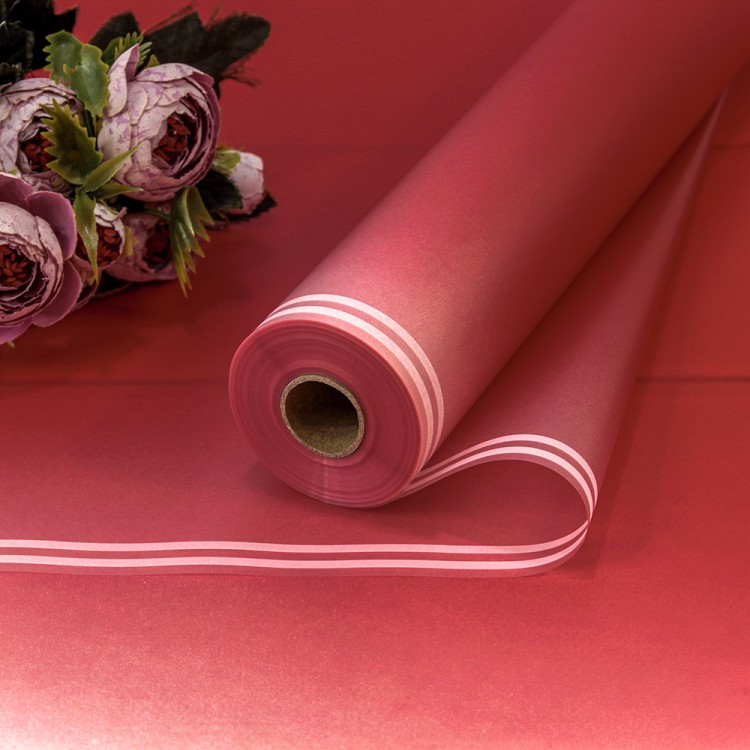 / Плёнка 58 см 800 г матовая с двойной белой полосой 55мкм Бордовый 4255