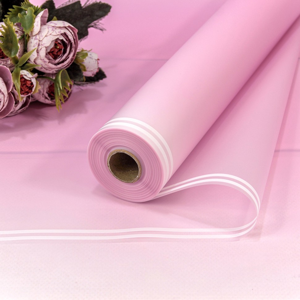 / Плёнка 58 см 800 г матовая с двойной белой полосой 55мкм Розовый-672 4286