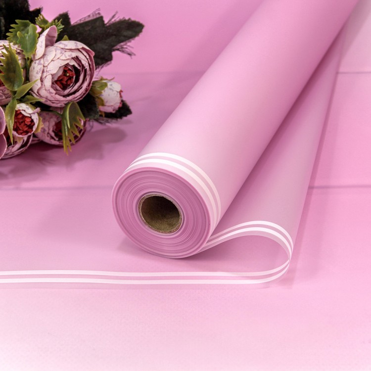 / Плёнка 58 см 800 г матовая с двойной белой полосой 55мкм Светло-пурпурный 4293