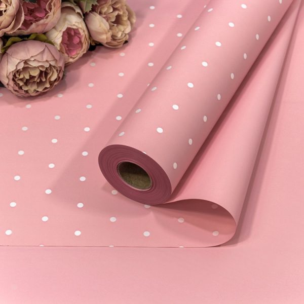 Плёнка 58см 800г матовая “Мелкий горошек” 55мкм Розовый 3682