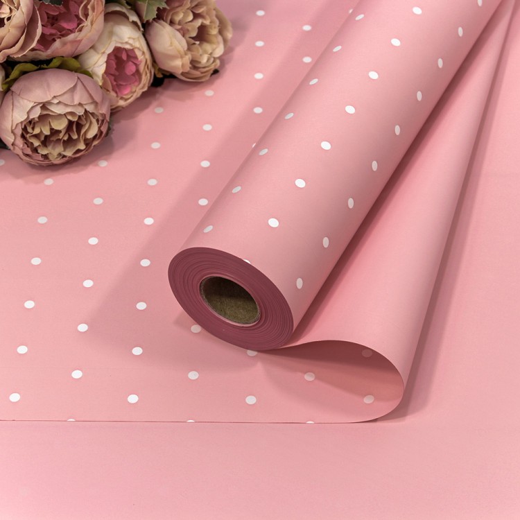 / Плёнка 58см 800г матовая “Мелкий горошек” 55мкм Розовый 3682