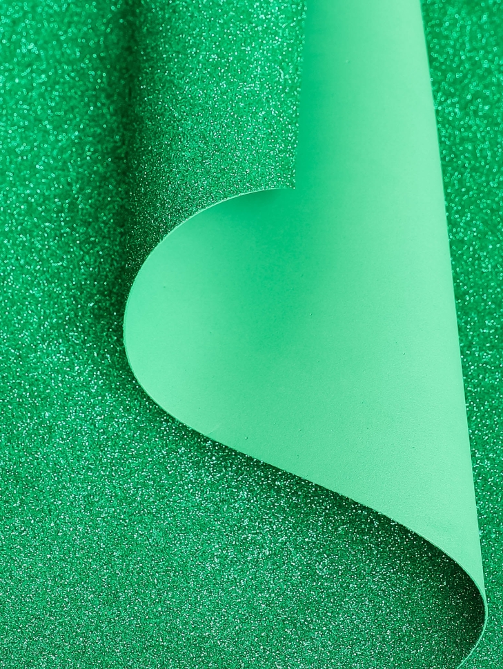 / Фоамиран глиттерный 60х70см 1,5мм К зеленый темный
