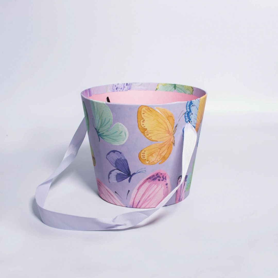 / Подарочная коробка “Стаканчик” 16*16*13.2см Бабочки на сиреневом т.м.120