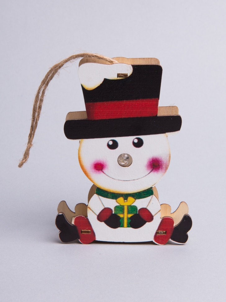 / Подвеска деревянная светодиодная 10х7х2см GD-12С снеговик