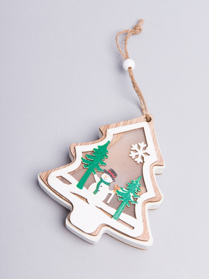 Подвеска деревянная светодиодная 10х9,5х2,5см GD-11С елочка