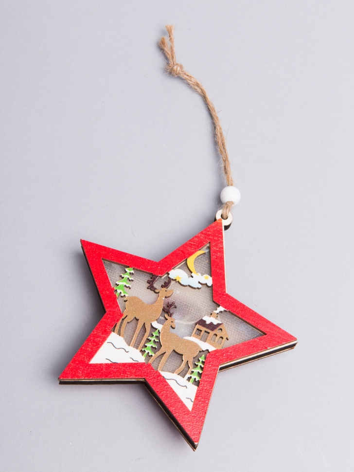 / Подвеска деревянная светодиодная 11х11см GD-7D звезда