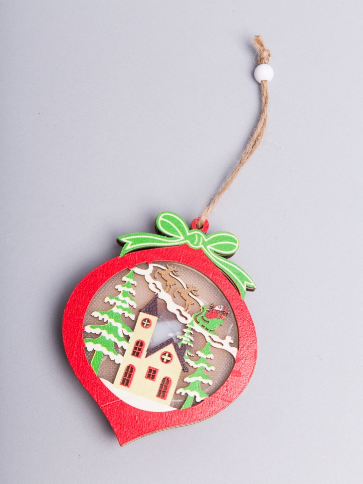 / Подвеска деревянная светодиодная 11х9см GD-7С шар