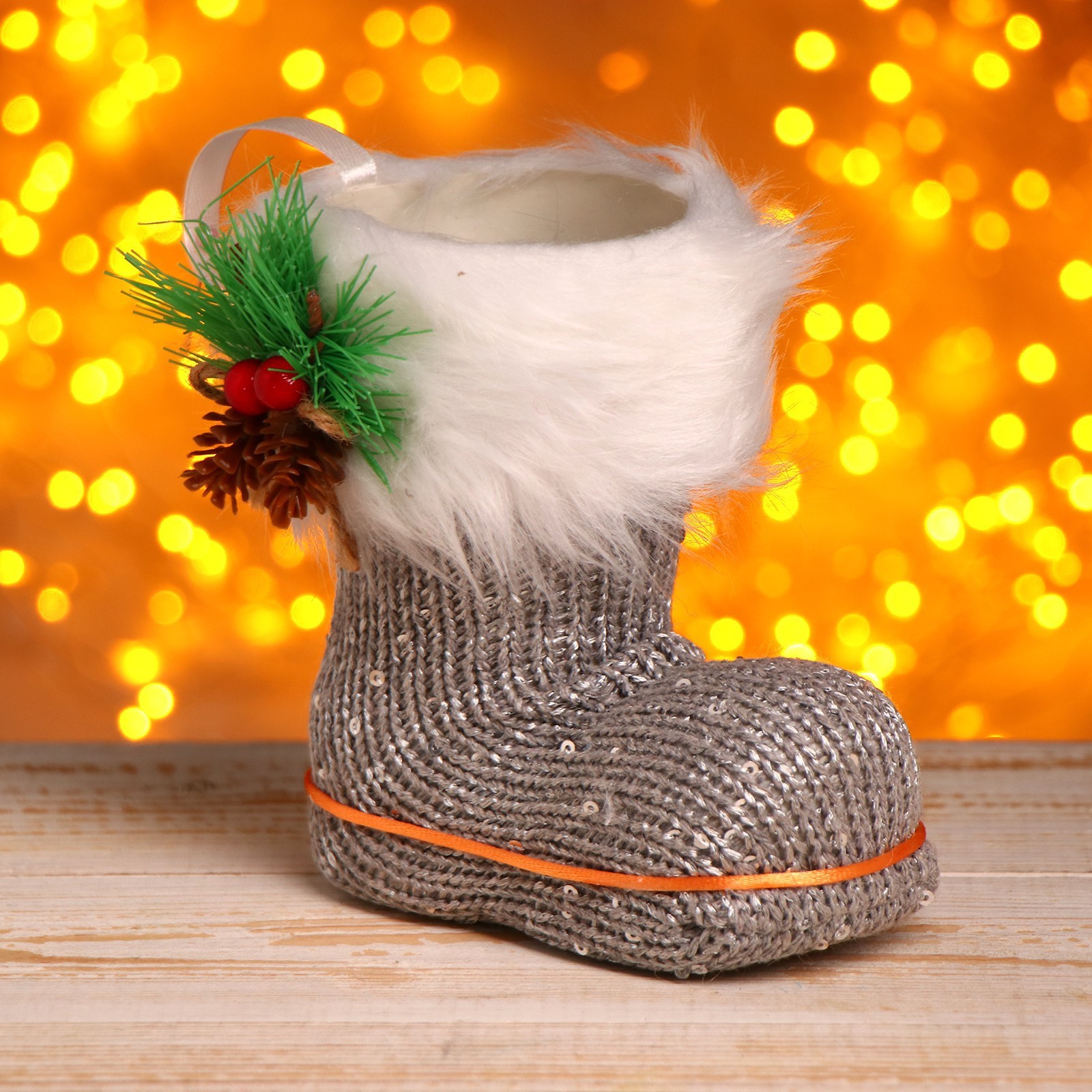 Количество товара Конфетница «Сапожок», с еловой веткой, цвета МИКС