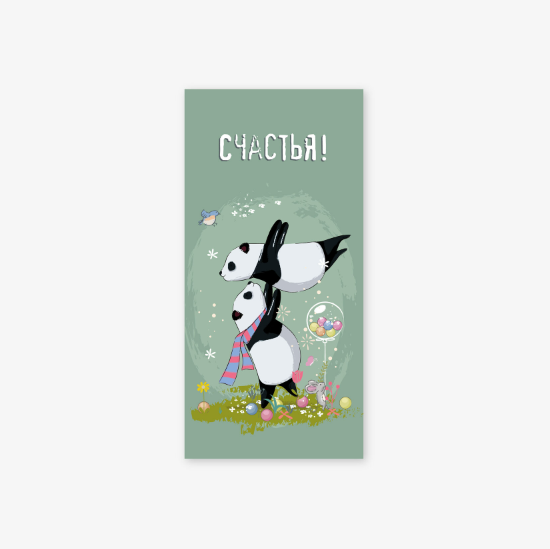 Конверт для денег 8*16,5см., “Счастья” Панды, 5шт/упак.