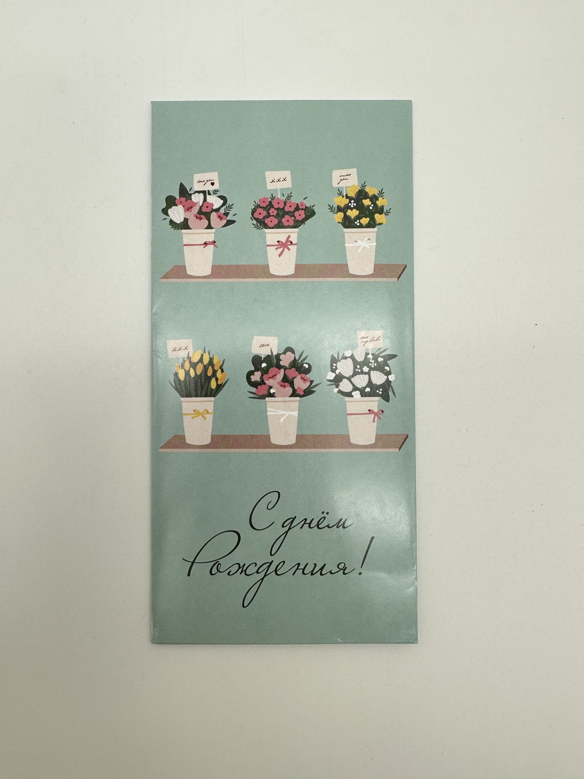 / Конверт для денег 8*16,5см., “С Днем Рождения ” полки с цветами, 5шт/упак.