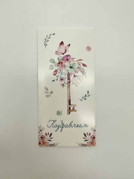 Конверт для денег 8*16,5см., “Поздравляем” Ключик, 5шт/упак.