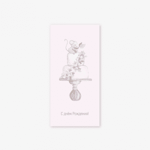 Конверт для денег 8*16,5см., “С днем рождения” Мышка на тортике, 5шт/упак.