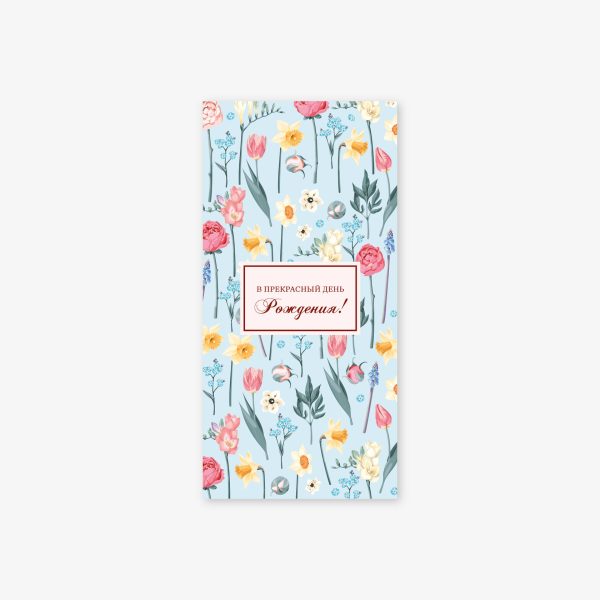 / Конверт для денег 8*16,5см., “В прекрасный день Рождения!” цветочный , 5шт/упак.