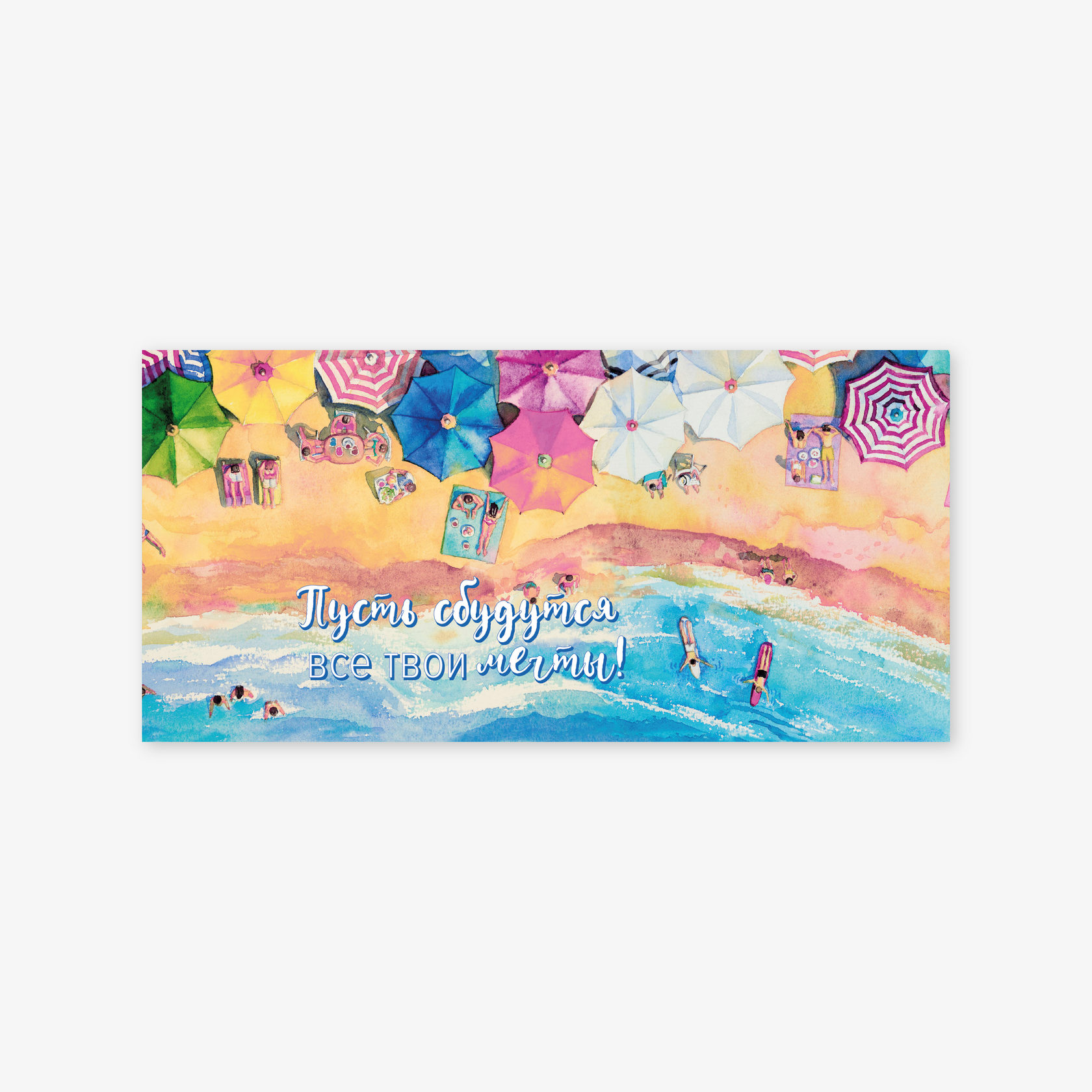 / Конверт для денег 8*16,5см., “Пусть сбудутся все твои мечты” пляж, 5шт/упак.