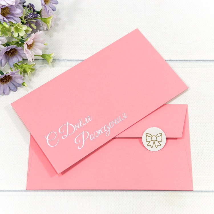 Конверт для денег 8*16,5см., “Поздравляем! От всех нас” Цветы на розовом, 5шт/упак.