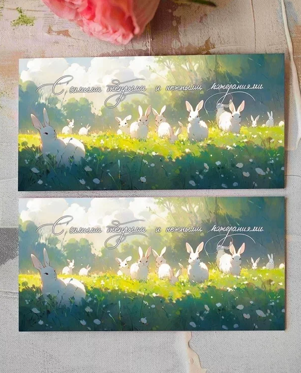 / Конверт “С самыми теплыми и нежными пожеланиями” Cn159 зайчики