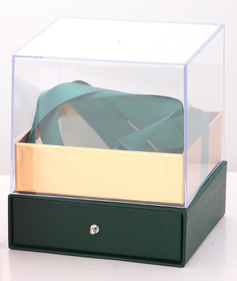 Коробка акриловая подарочная с ящиком, 14,5*14,5*16,5, зелёный