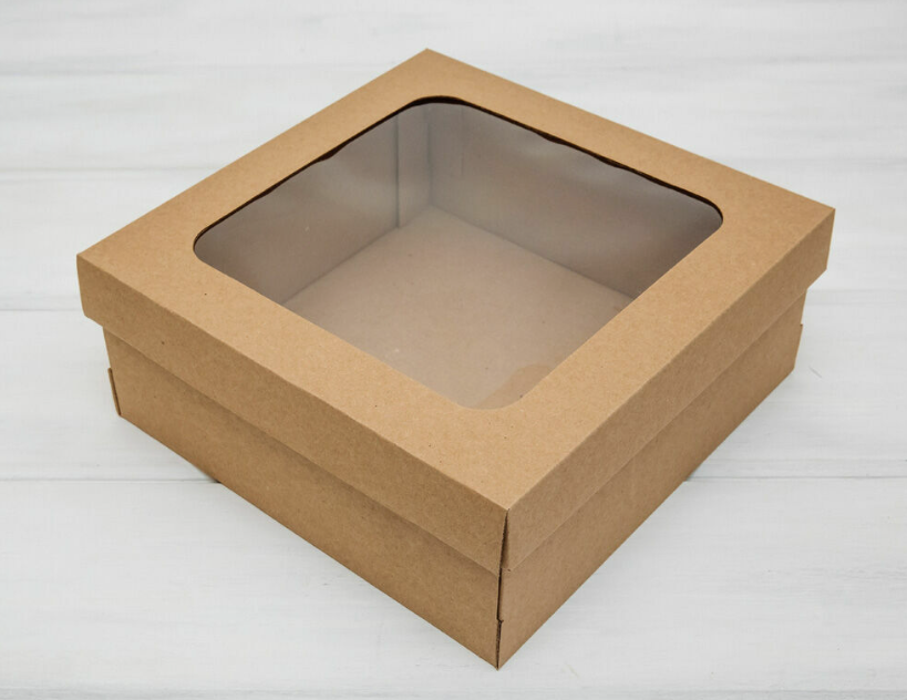 Коробка для венков и подарков 320*320*150 с крышкой с пластиковым окном 1ШТ.