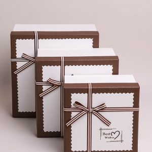 Коробка квадрат набор из 3шт 23х23х14см кант кофе/белый